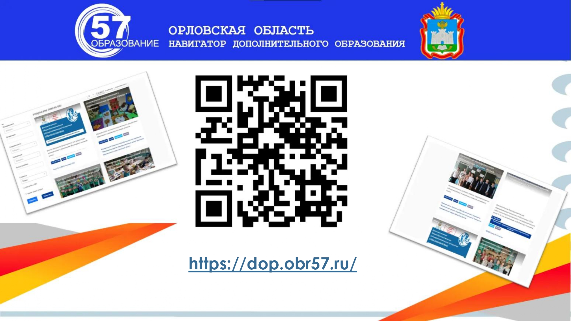 Запись на кружки и мероприятия будет осуществляться по ссылке https://dop.obr57.ru/